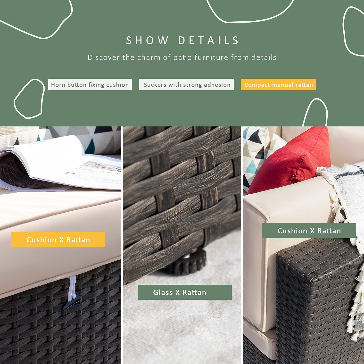 - - Sectional & Suitable: Patio furniture Sectional sofa sets freely rearranged into different combination for different occasion. Widely used for outdoor patio. porch. backyard. balcony. poolside. garden and other suitable space in your home