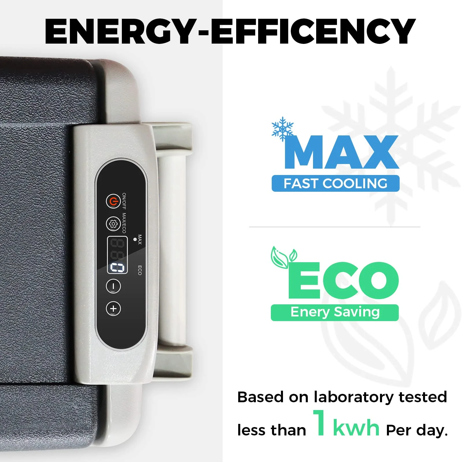 • ��Consumes Less Than 1kw.h Per Day & Fast Cooling�� SetPower 12volt refrigerator has the function of energy saving. With the energy saving mode. the operating power is less than 45W for its intelligence cycle work. This portable fridge can cool down From 77�H To 32�H in15 Minutes.
