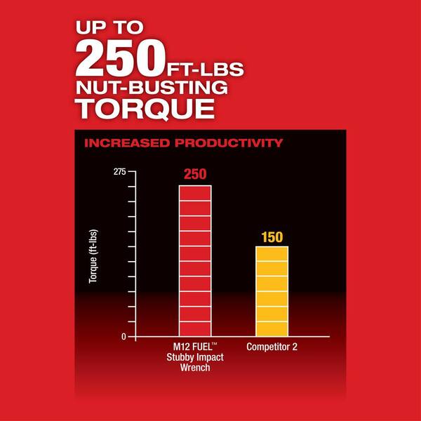 The M12 FUEL Cordless Brushless 3/8 in. Stubby Impact Wrench is the industries most compact impact wrench on the market place. Measuring only 4.8 in. L this tool fits in tighter spaces making users more productive. Increased torque delivers an industry leading 250 ft./lbs. of breakaway torque removing even the most stubborn bolts and fasteners. 4-Mode Drive Control will allow unmatched control in various fastening applications. 1-3 RPM allows for precision control and Auto-Shut Off Mode in the 4th setting will prevent over fastening of bolts while doing reassembly work. The Milwaukee 43-Piece SHOCKWAVE Impact Duty 3/8 in. Drive SAE and Metric Deep 6 Point Socket Set features the boldest longest-lasting markings and extreme impact durability in high torque applications. The stamped and ink-filled size marking enables users to select the right socket every time throughout the life of the socket. These Milwaukee sockets are engineered with high strength forged steel for optimized performance in heavy-duty applications.