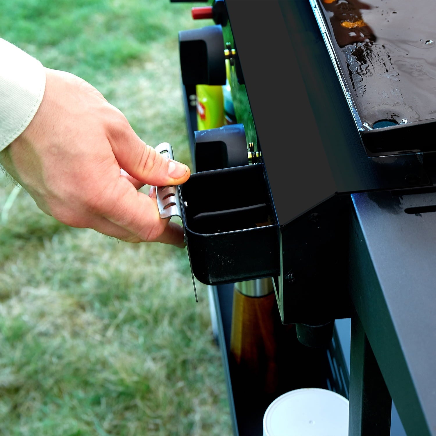 - Removable grease tray and grease cup provide hassle-free cleanup.