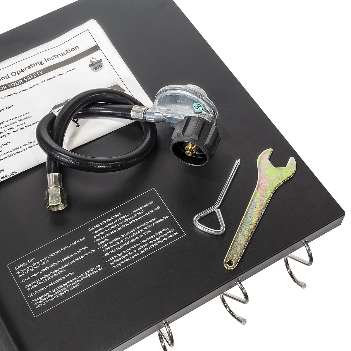 • Multi Functional Station - Multi-functional propane double burner station is designed with mountable flat top griddle and double deep fryers that covers each independent burner for teppanyaki-style grilling and deep frying all kinds of food