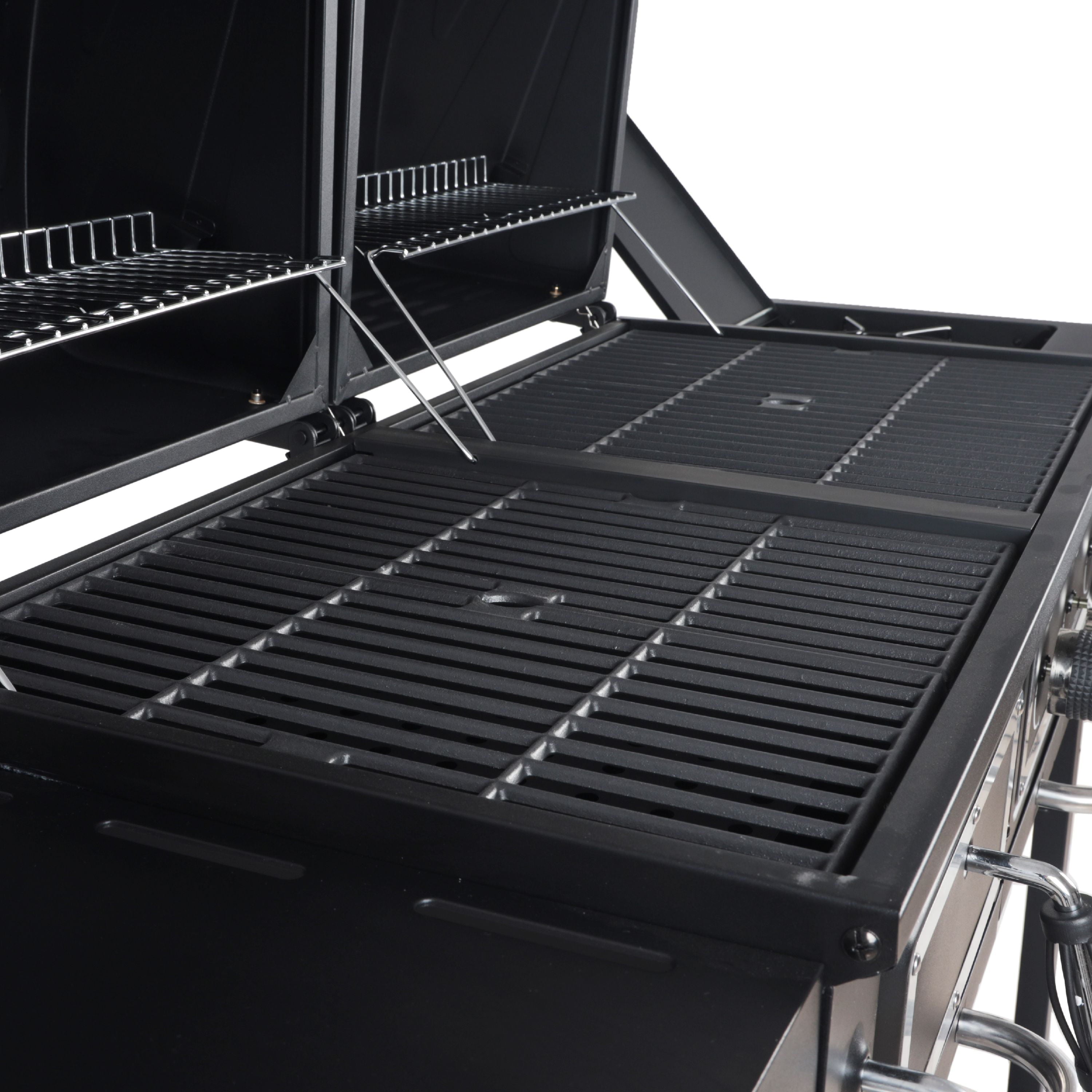 • 557 sq in total cooking space (262 charcoal 295 gas)