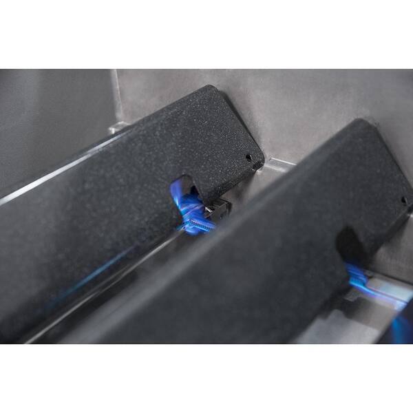 The thin side of the porcelain-enameled cast-iron cooking grates is ideal for delicate food such as fish and shrimp while the wider side creates a thick sear mark enhancing the flavor of your food