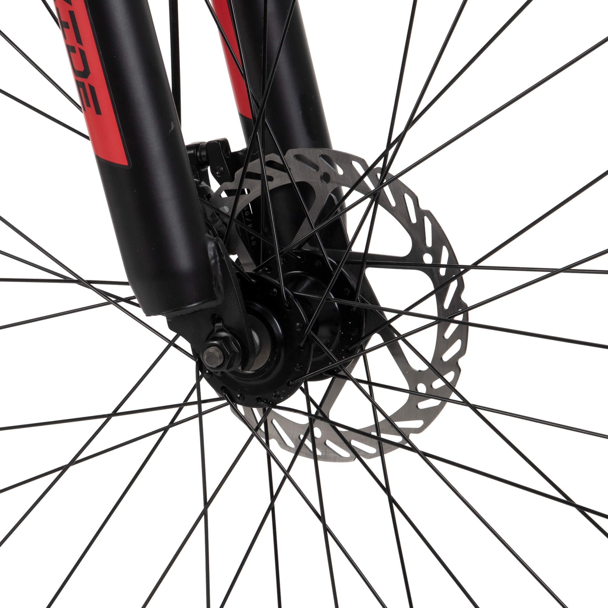 - Frame and Fork: Hardtail steel frame and dual suspension fork combine for a responsive ride.